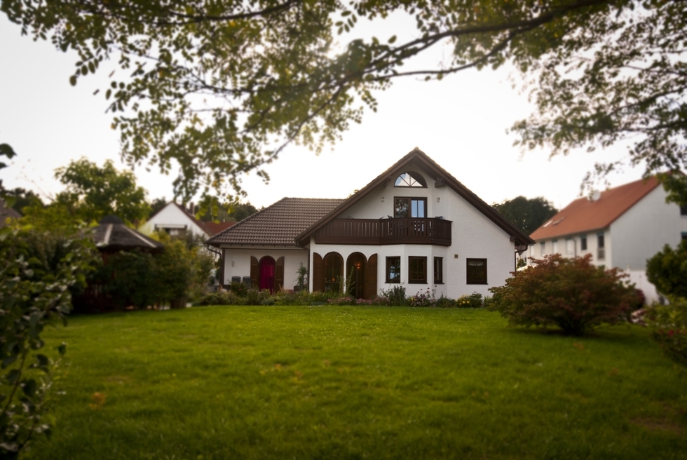 Die Rückansicht des Hauses. Auch hier wird die Größe und das natürlich Ambiente des Gartens sichtbar