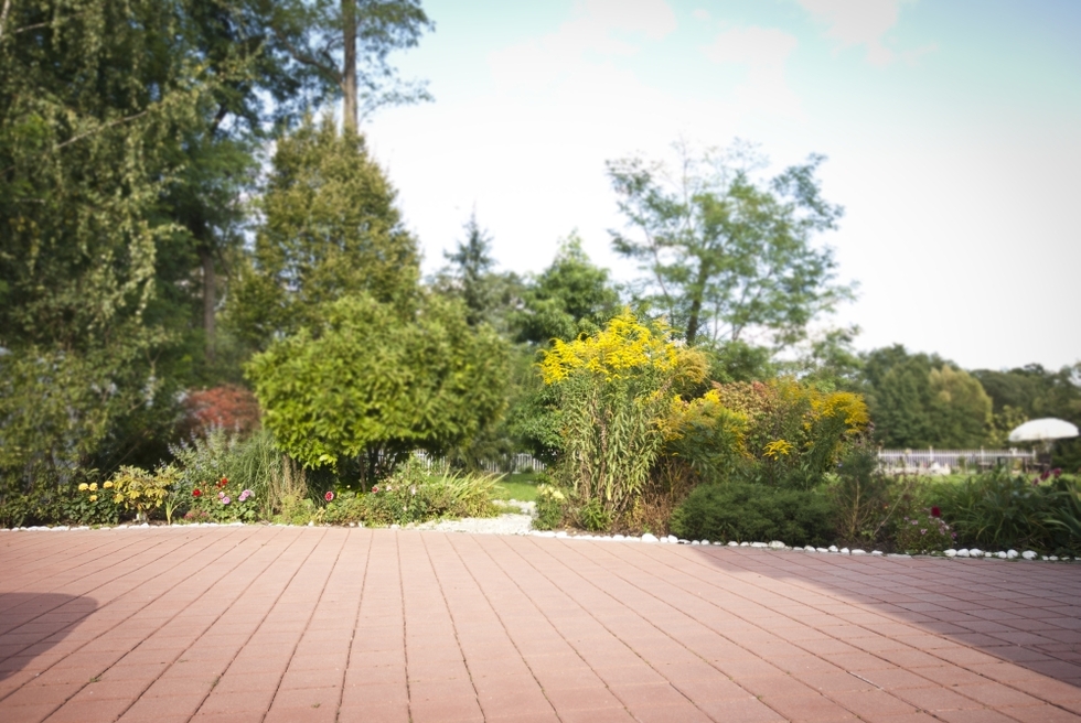 Der Blick in den Garten lädt ein zum Entspannen und Relaxen an der frischen Luft.